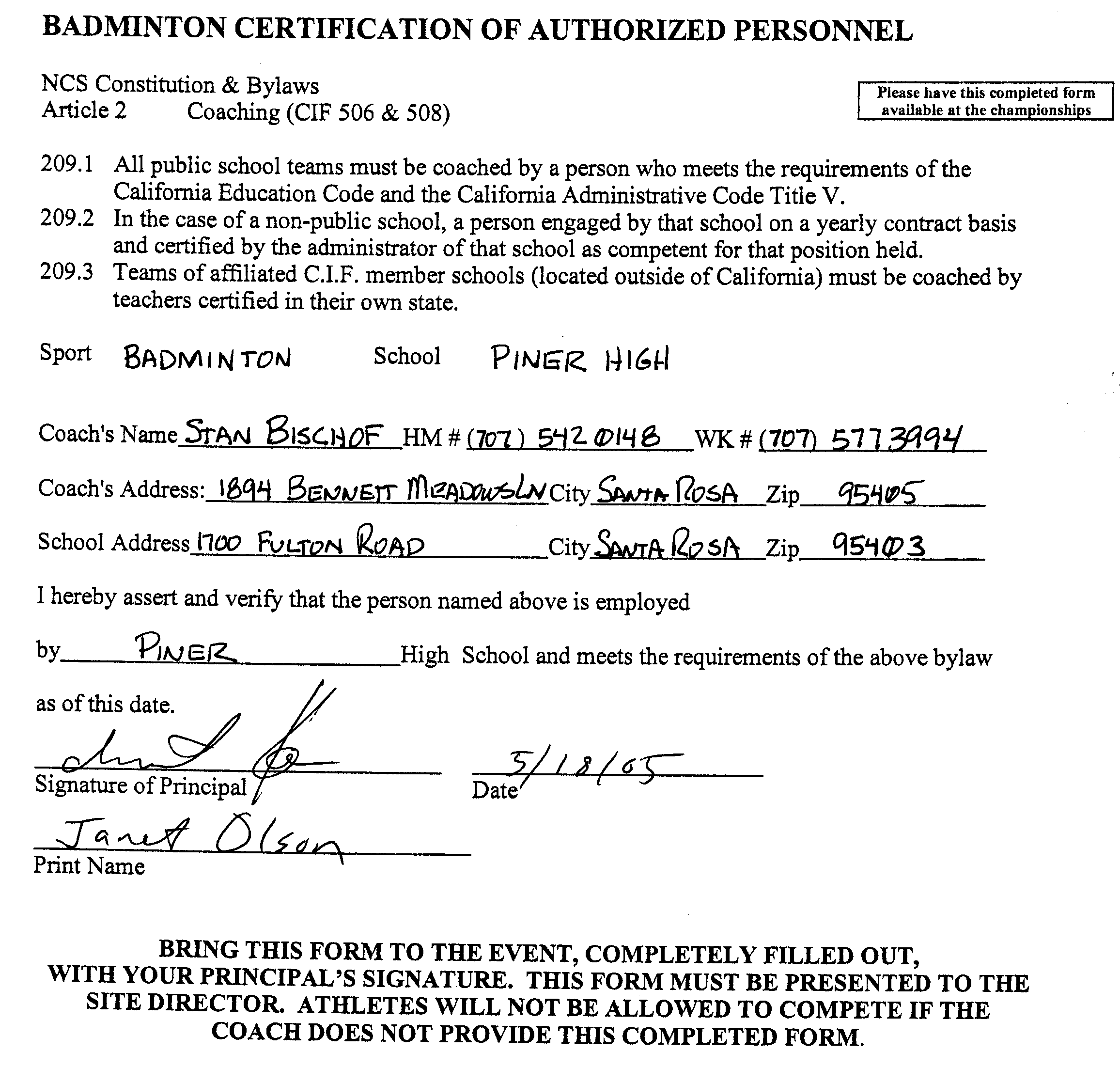 badminton team from 1993-2011. In 2013 I moved to Elsie Allen High, then in 2018