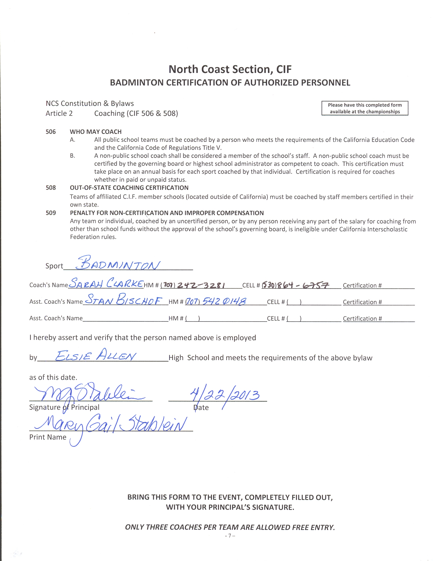 badminton team from 1993-2011. In 2013 I moved to Elsie Allen High, then in 2018