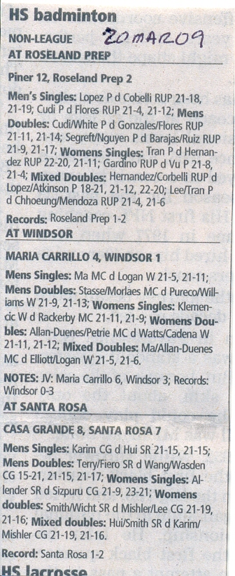- Piner at Maria Carrillo (MC 12-3, JV PI 5-4)