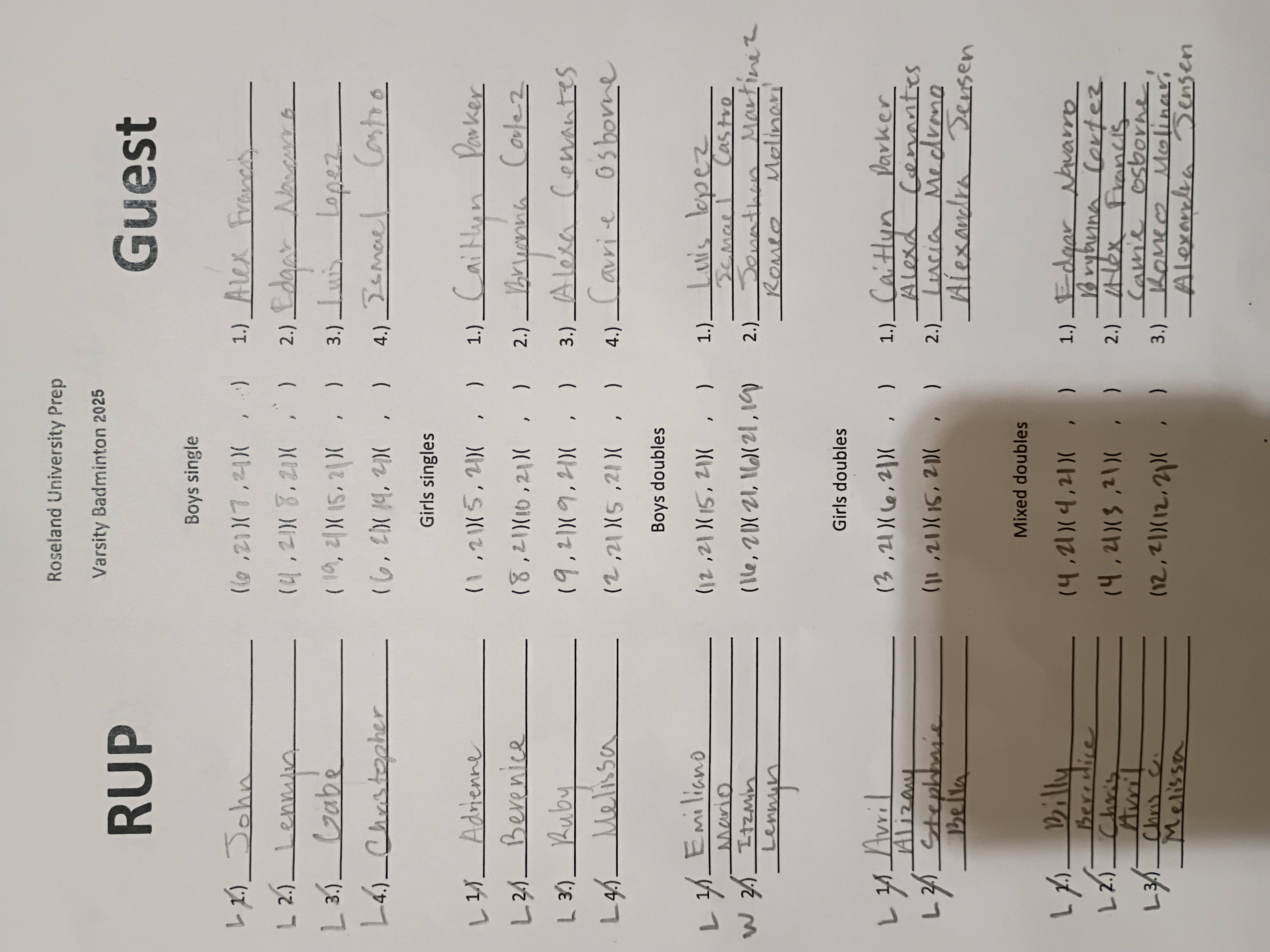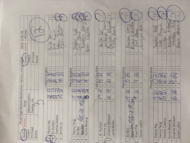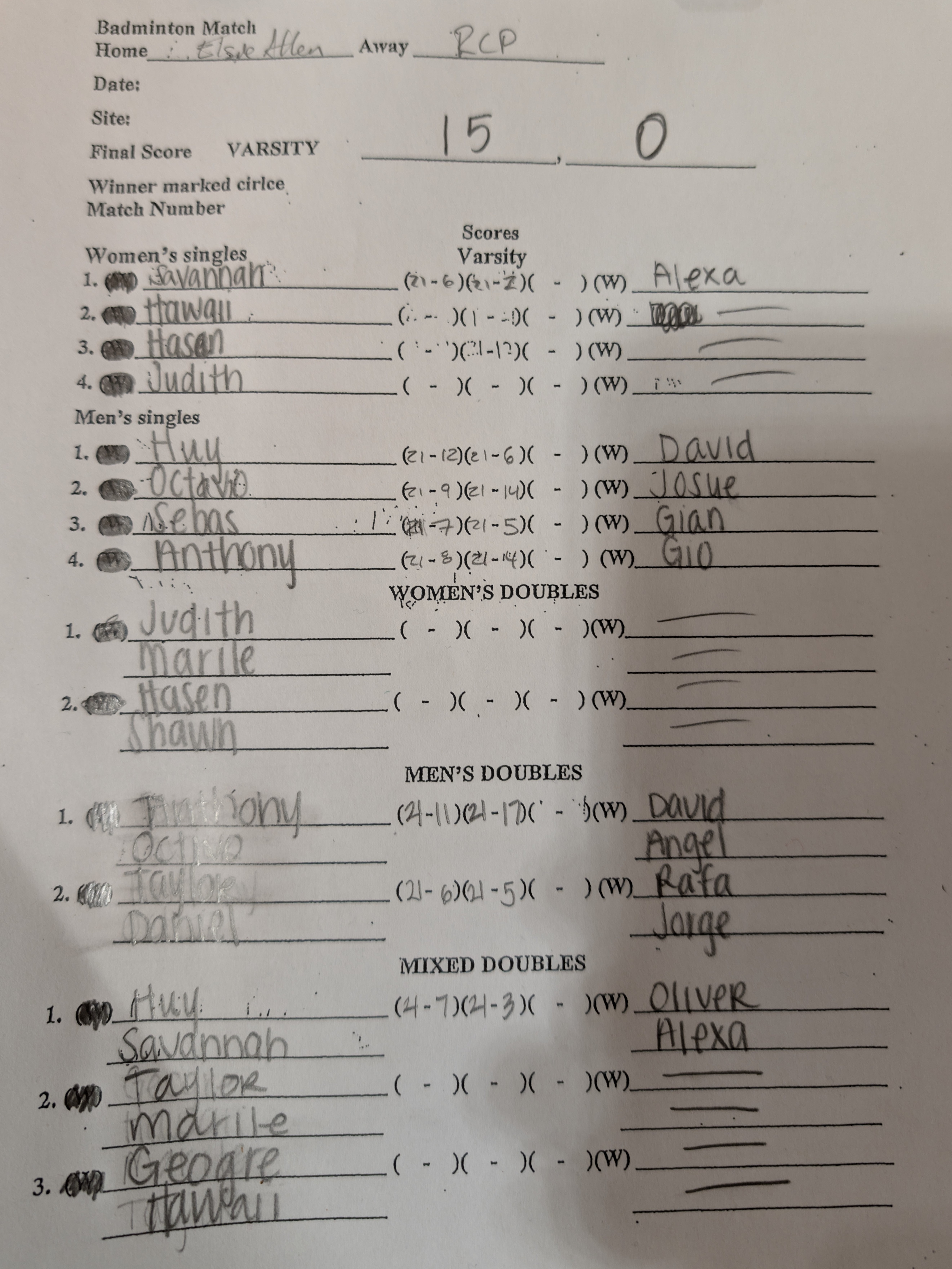 Both coaches at each match please send in results (all matches including JV and exhibition) directly after meets. Any format is fine- email/mms /hardcopy dropped at Stan's house or even FAX if you really want to (ask if you don't know where). Easiest (probably): point your phone at the final scoresheet, snap a picture, and email or text it to me (stan@worldbadminton.com). Note that most matches start at 4:30 and most gyms do not open before 3:30. Healdsburg: gym opens at 4:00 and matches start at 4:30. Please do NOT arrive earlier as school will still be in session. RCP: gym opens 5:30 and matches start at 6.