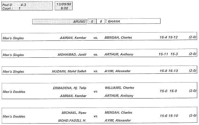 | Team Preliminaries | 12th September 1998 - Part 1 / Part 2 / Part 3 |